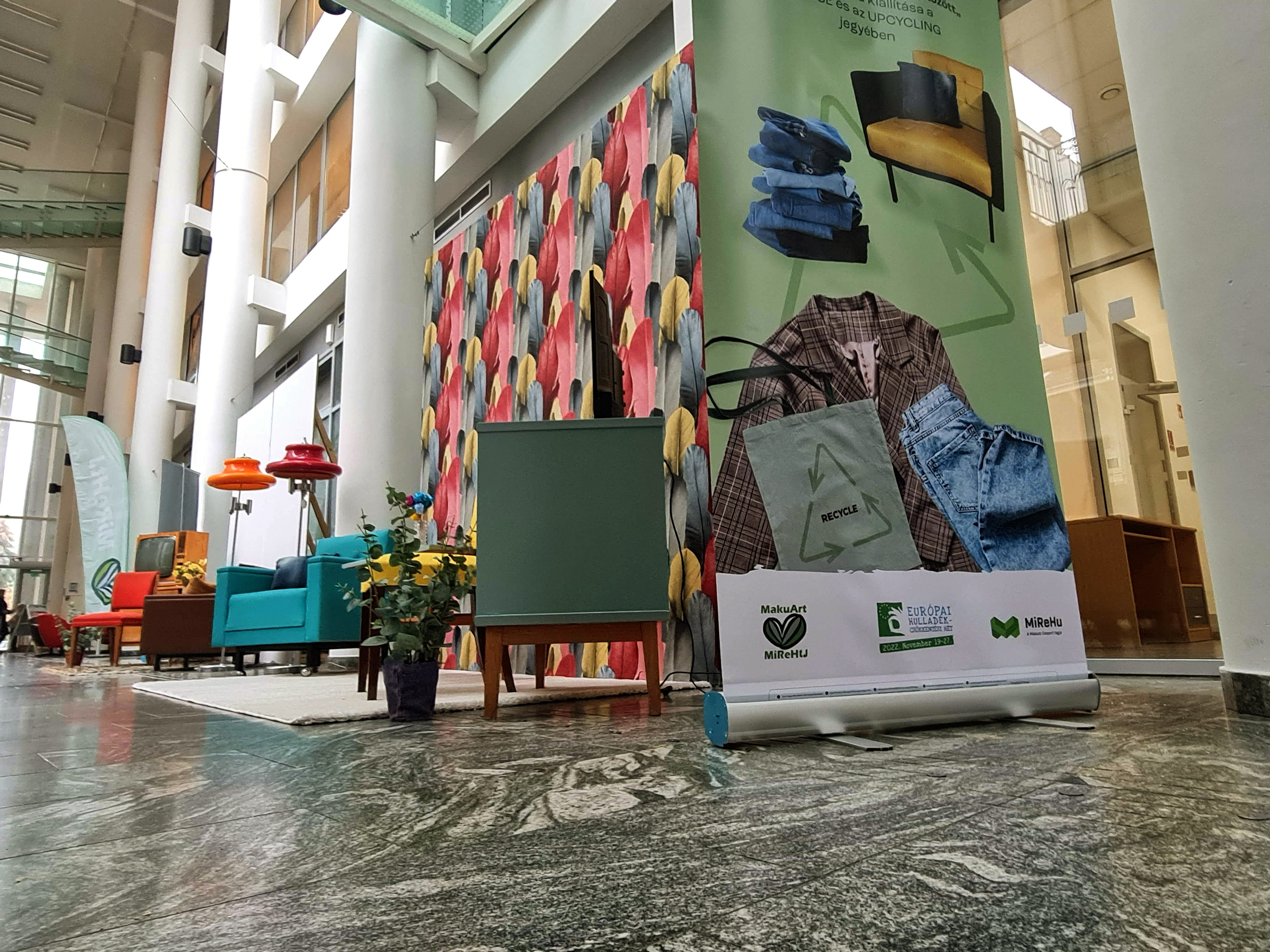 Az installációk összekötő elemeként pedig tájékoztató rollupokat helyeztek el a reuse, recycling, upcycling és megelőzés témakörében, a fókuszt a textíliákra helyezve. Bemutatják a textilipar káros hatásait, illetve azt is hogyan tudunk lépéseket tenni az újrahasználat és az értéknövelő újrahasznosítás felé.